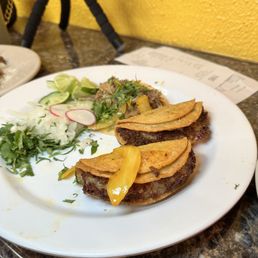 Beef tripe, Each taco comes with corn tortilla's, Served with cilantro, raw and grilled onions. With a side of cucumbers, and radish, Fresh Limes, Hot or mild sauce on the side.(price per taco)