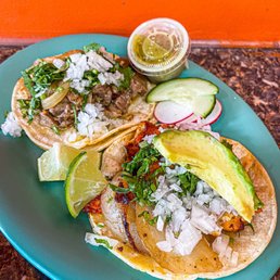Vegetable taco served with Avocado, lettuce, Mozzarella Cheese, Cactus, Grilled Tomatoes, Each taco comes with corn tortilla's, Served with cilantro, raw and grilled onions. With a side of cucumbers, and radish, Fresh Limes, Hot or mild sauce on the side.(price per taco)